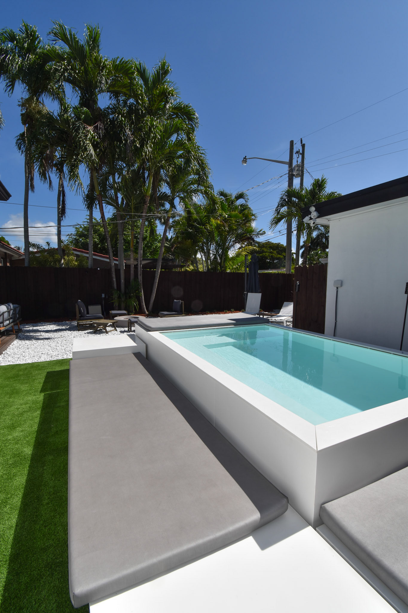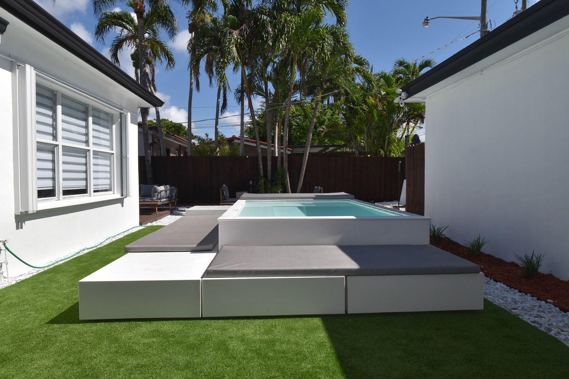 Luxury outdoor space with R-Blade pergola and entertainment area.