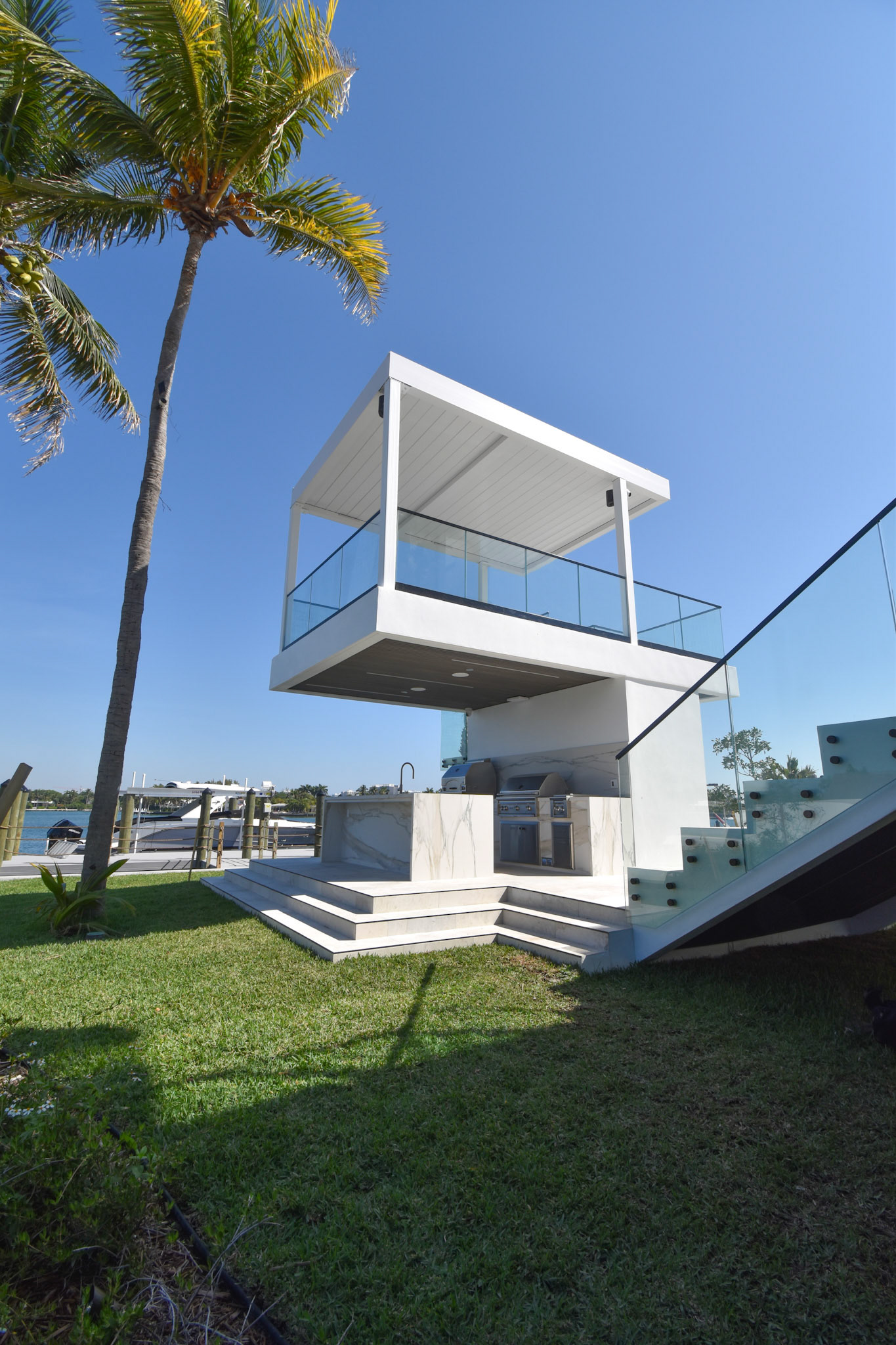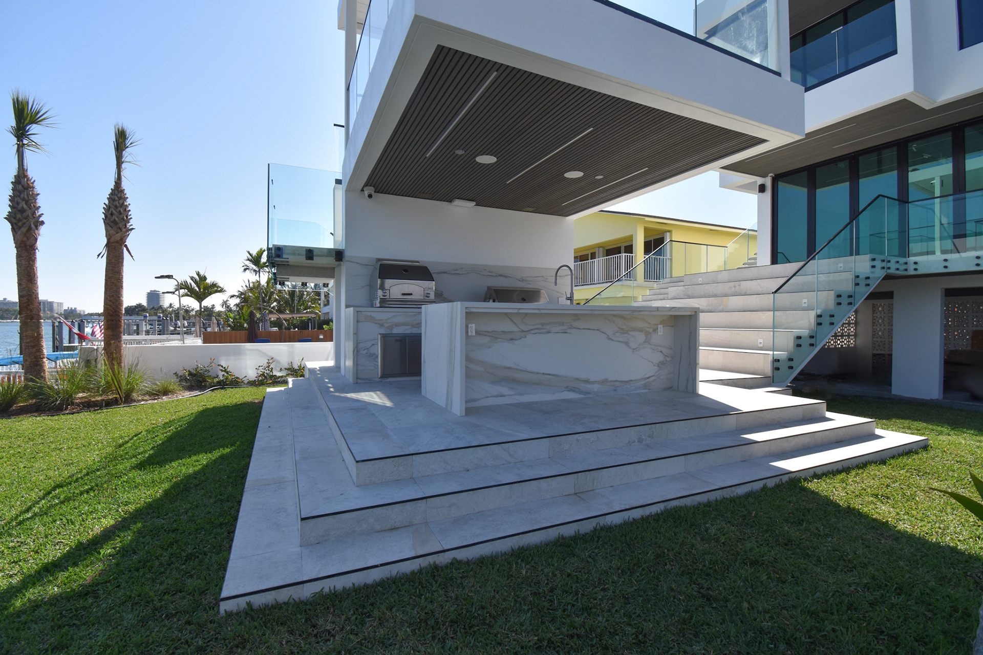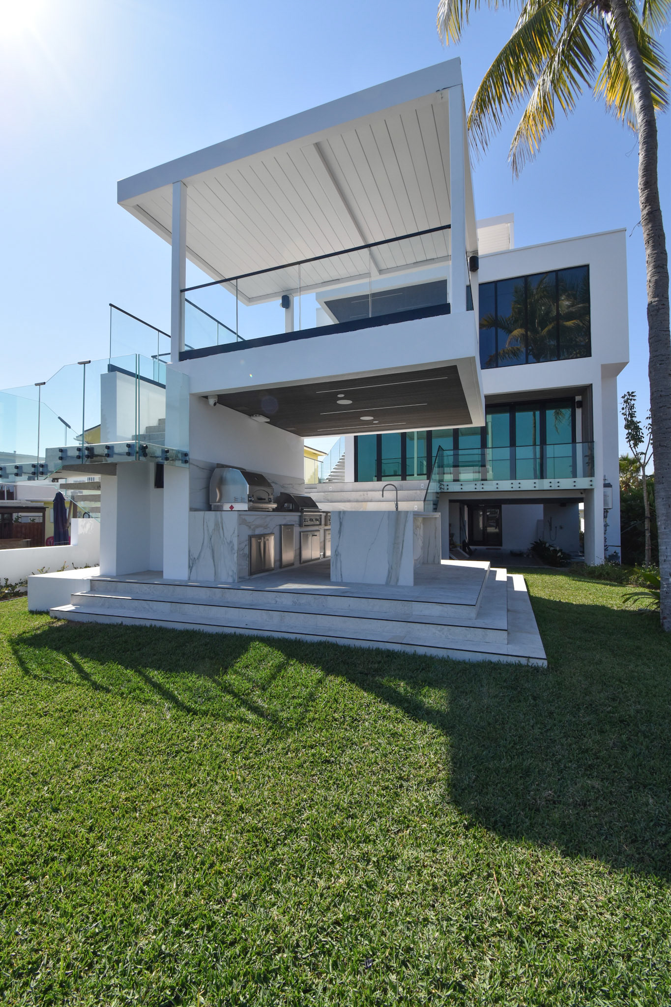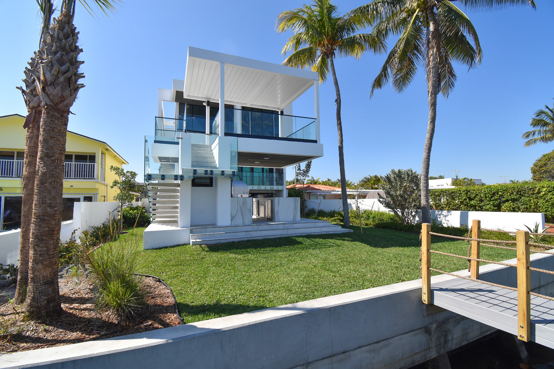 Beachside luxury outdoor living with R-Series pergola and pool remodeling.