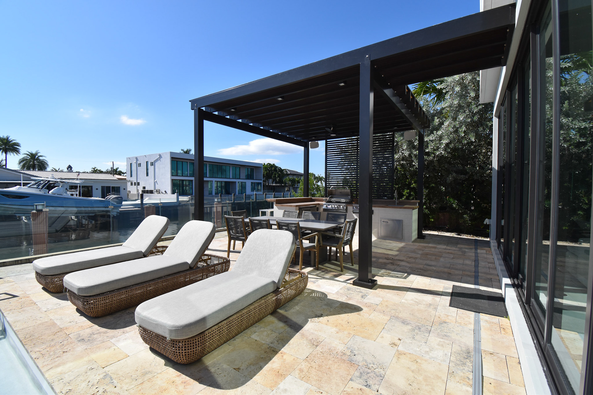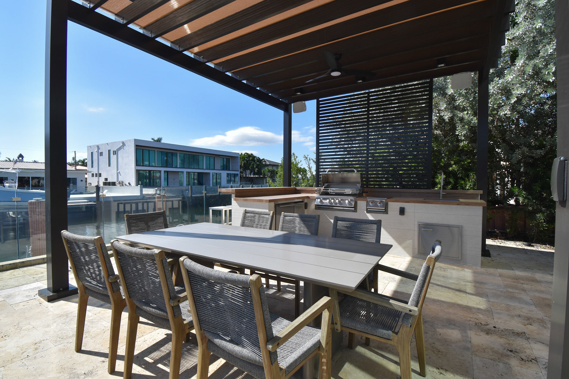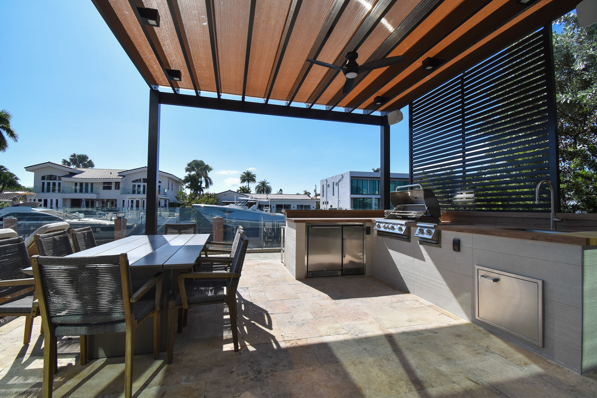 Full property renovation including pergola, outdoor kitchen, and paver installation.