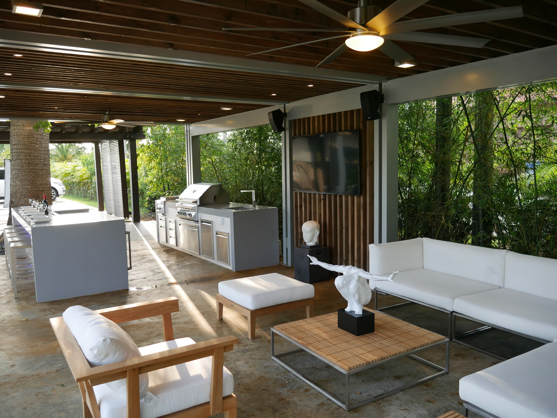 Classic outdoor renovation with pergola and landscaping.